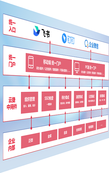 对协作平台提供支持服务,,,支持企业应用与协作平台对接,,包含组织同步、、、、消息集成、、待办集成等。。。支持目前主流的协作平台:钉钉、、、、企微和飞书。。。。